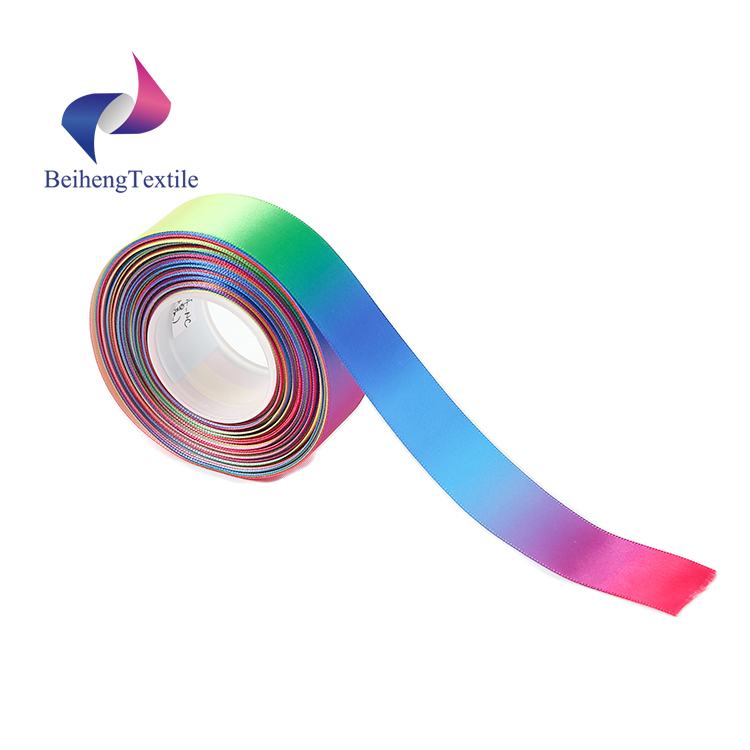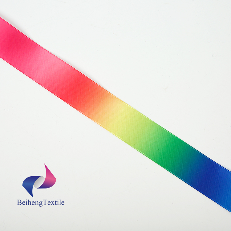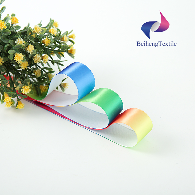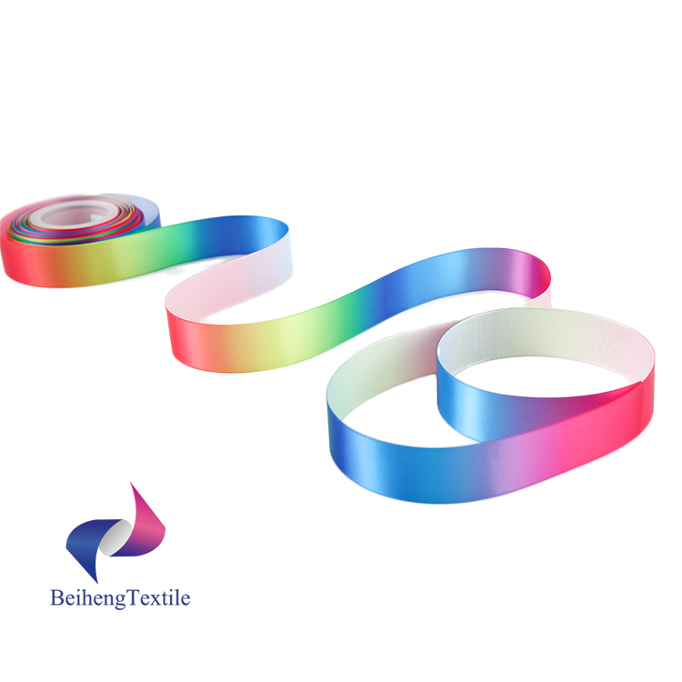 | Destription | 100% Polyester Heat Transfer Printed Rainbow Satin Ribbon |