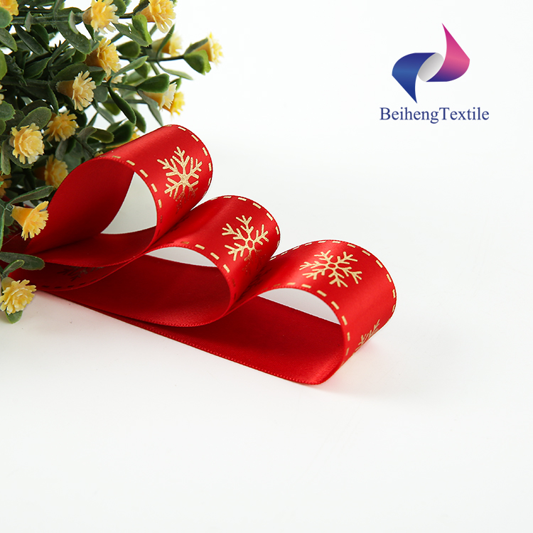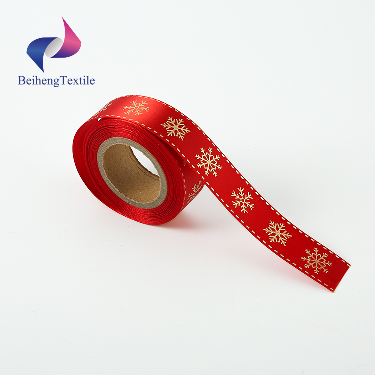 | Destription | Double Side 100% Polyester Gold Foil Printed Satin Ribbon |